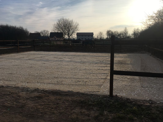 September 2018: Die Allwetterpaddocks wurden von uns renoviert und es entstand ein neuer Longierzirkel mit top Geotextilboden und Einzäunung, eine weitere Bereicherung für unsere Anlage