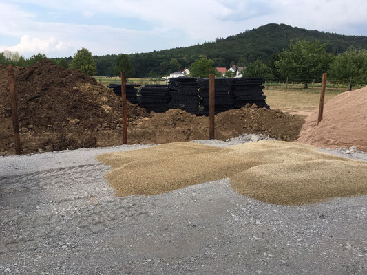 11.09.2013: Es ist soweit. Halle und Aussenplatz sind mit neuem Reitboden der Firma Transpofix Equestrian bestückt!